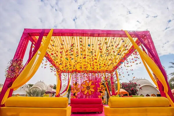 Want to have a wedding and a holiday wrapped in one trip? Go for a destination beach wedding which has become one of the most popular Indian wedding themes nowadays. Book a beach resort or hotel as your wedding venue. As most of the events are outdoor, provide colourful umbrellas, hats, scarves and sunglasses to your guests.